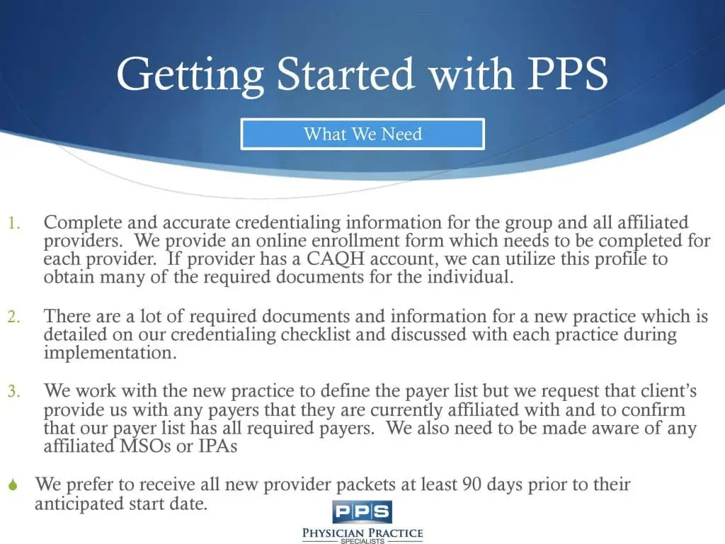 We put this overview together to help you understand the process involved in getting your new practice set up with all of the payers.  There are obviously a lot of details that we had to leave out but this should still equip you with the understanding of what to expect.  Feel free to take a few minutes to review the below slideshow